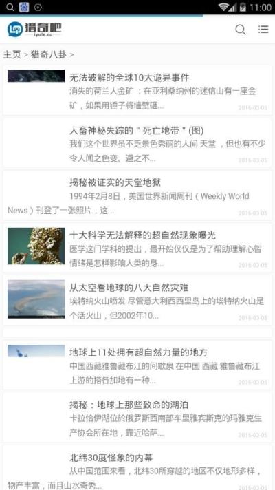 猎奇吧是一款专注于神秘现象探索与知识科普的移动软件,汇集了全球范围内的奇闻异事、未解之谜与前沿科学发现,构建一个兼具趣味性与严谨性的信息平台,通过多维度、系统化的内容呈现,满足用户对未知世界的好奇心与求知欲。内容覆盖历史谜团、自然奇观、超自然事件及科学前沿等多个领域,为用户提供深度阅读与思考的空间。