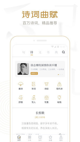典读是一款专注于中华经典文学传承与普及的移动软件,系统化整合与呈现中华民族数千年的文化瑰宝。通过精心编排的内容体系,为用户提供了一个便捷、深入的古典文学学习环境,涵盖诗词、典籍、名著等多种体裁,帮助现代读者轻松接触、理解并爱上传统文化。