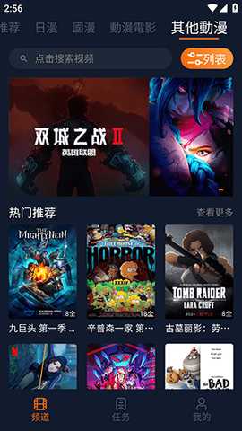 通过位于界面顶部的全局搜索框,输入作品名称、角色名或相关关键词,可快速从海量资源中定位到匹配的动画列表,提升查找效率。