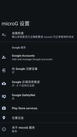 成功安装核心服务、辅助工具及框架代理组件后,切勿立即启动软件。首先进入系统设置的软件列表,找到microG Services Core,在其权限管理中授予所有必要权限。随后打开软件,使用自我检查功能进行兼容性诊断,并依据报告逐一启用所需服务。