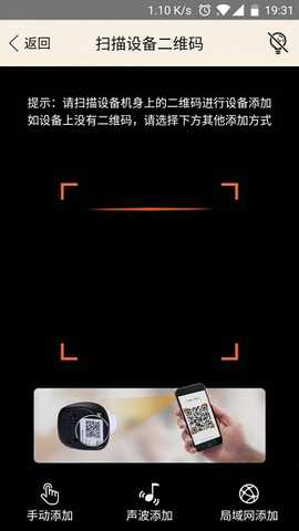 支持扫描设备二维码、手动输入、声波配网及局域网发现等多种摄像头添加与绑定方式,适配不同配置场景。