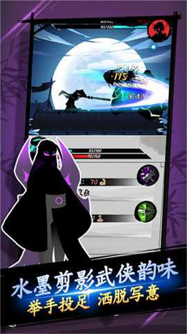 艺术表现采用极简的水墨与剪影风格,以流动的墨色与凌厉的线条勾勒出刀光剑影与山水意境,战斗特效与环境交互在留白与浓淡之间展现出独特的东方韵味。