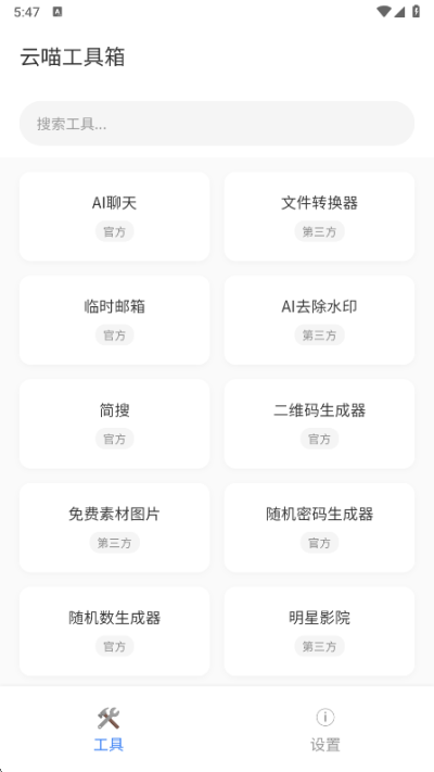 云喵工具箱是一款集合了多种实用功能的综合性工具软件,通过一个简洁的软件,为用户提供日常工作和生活中所需的各种便捷服务,整合了从基础的数据处理到多媒体文件编辑等一系列工具,覆盖了广泛的场景需求,让用户无需在多个软件间切换,即可高效完成任务。无论是简单的单位换算、二维码制作,还是稍复杂的图片处理与格式转换,都能轻松应对,极大地提升了个人效率与数字生活的便利性。