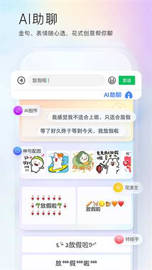 深度整合AI文本生成引擎,可在聊天、邮件、文档编辑等多种场景中一键调用,根据上下文语义快速生成连贯段落、社交文案或工作汇报。