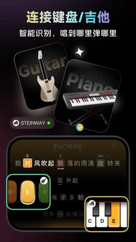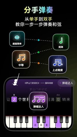 钢琴与吉他模拟界面可随时自由切换,两种乐器的指法布局、和弦图标识及操作引导均经过独立优化,切换后即刻适配,满足多元化学习需求。