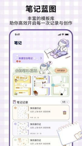 预置工作日志、旅行手账、读书笔记等场景化模板,内置结构化字段引导记录,提升信息整理的效率与条理性。
