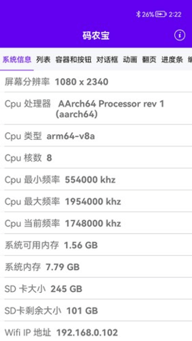 整合了硬件信息查询模块,能够实时读取并展示设备的屏幕参数、型号标识、内存使用状况等关键数据,为开发适配提供参考。