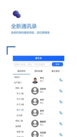 企业通讯录整合所有人员信息,便于快速查找联系;项目中心则聚合了基础资料、分包商详情、关键里程碑及待办事项,成为项目团队的信息聚合与协作门户。