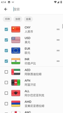 自定义货币关注列表