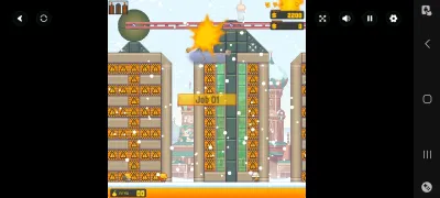 执行过程中必须时刻关注动态因素。地图上标红的保护性建筑和头戴黄色安全帽的工人是绝对不可触碰的底线。观察工人的移动路径和节奏,预判其位置,选择在其远离危险区域或建筑碎片坠落轨迹之外的时机引爆炸药。在太空关卡中,由于重力环境改变,碎片飘落缓慢,策略需从引发垂直倒塌转向制造水平碰撞和动量传递,以在低重力下实现最大范围的清理。