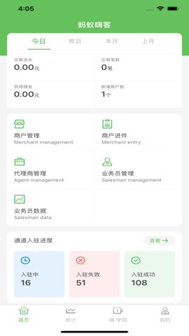 合作伙伴与业务员可通过标准化流程快速完成商户入驻,并实时跟踪审核状态与后续服务进度。