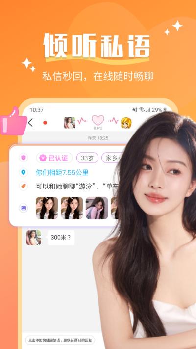完成注册后,系统会引导您完善个人资料与兴趣标签。随后首页的发现页面会基于您的位置和标签推送用户卡片,上下滑动浏览,点击感兴趣的头像即可查看详情并发起对话,流程非常直观。