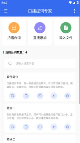 支持通过设备摄像头即时拍摄纸质文稿或电子屏幕画面,利用OCR技术快速准确地提取并转换为可编辑的电子文本,大幅提升了从实体媒介到数字提词稿的转换效率。