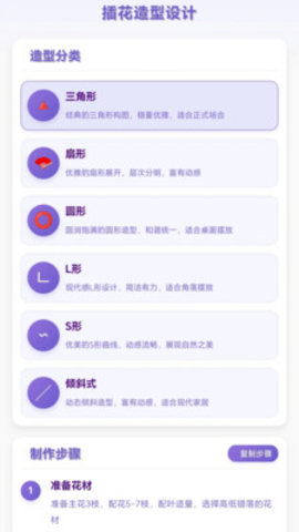 插花高手是一款专注于花艺技能培养的移动软件系统性地整合了植物学知识、色彩理论与空间造型艺术,帮助爱好者建立完整的插花知识体系。软件内包含从花材认知、色彩搭配原理到具体造型构建的全流程指导,通过高清图文教程、分步视频演示及交互式练习,引导用户由浅入深地掌握核心技法,最终能够独立设计并完成富有创意与美感的花艺作品。