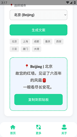 将复杂的文案构思过程简化为几次点击操作,尤其适合需要高频产出旅行内容的博主、导游或普通旅行爱好者,能快速获得可用文案素材。