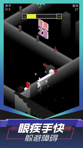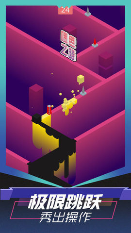 喷色之路是一款以色彩辨识与空间判断为核心的俯视角跑酷作品,操控一个彩色方块在倾斜的立体跑道上滑行,通过精准的点击操作实现转向与跳跃,目标是抵达与方块颜色相匹配的终点区域,其关卡制结构提供了循序渐进的挑战,简洁的触控交互则让紧张刺激的奔跑体验贯穿始终。