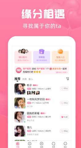 依据用户填写的兴趣标签与实时地理位置数据,智能推荐潜在匹配对象,并设有独立的同城板块,便于探索身边的社交机会。