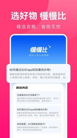 慢慢比是一款集成了个人财务管理与智能购物比价服务的综合性移动软件,通过数字化工具协助用户系统化记录日常收支,实现对目标商品的价格监控与优惠信息获取。其核心价值在于将消费行为分析与市场信息洞察相结合,帮助用户形成更理性的财务规划与购物决策习惯,从而优化个人或家庭的资产配置效率。