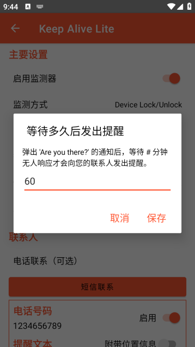 KeepAliveLite是一款专为安卓设备设计的轻量级安全监测软件,主要面向独居人士或需要日常安全确认的用户群体,通过监控设备的操作状态,在预设时间内无活动时自动向指定联系人发送定制短信提醒,从而提供一种被动的安全保障。整个流程无需注册登录,不依赖网络账户,且无广告干扰,注重本地化隐私保护,以简洁直观的交互降低使用门槛,实现即装即用的安心守护。