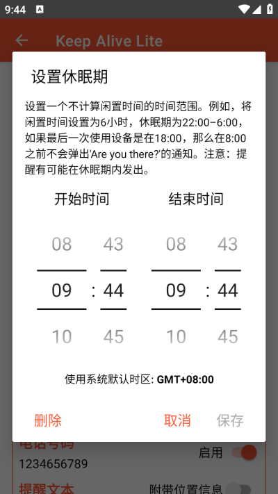 自定义无操作监测时长