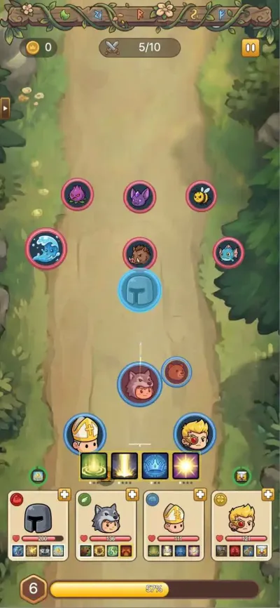 英雄在战斗中积累经验升级后,系统会提供随机的技能强化选项,每一次选择都将永久性地改变其能力倾向,构筑出独一无二的战斗流派。