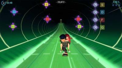 核心互动围绕聆听与反应展开。角色会自动向前滑行,需通过左右滑动控制其横向移动。屏幕上出现的闪烁光点是主要得分来源,确保角色与之接触即可。道路上疾驰的车辆构成主要威胁,需及时规避。特别需要注意的是,存在长条状连续光点,要求在接触后保持滑动直至光点结束,以完成滑动音符操作。随机出现的特定形状单点闪光,则需要准确的点击触控。所有操作的成功与否,均与背景音乐的节拍严格对应,提前或延后都会影响判定与连击积累。