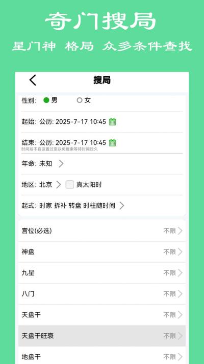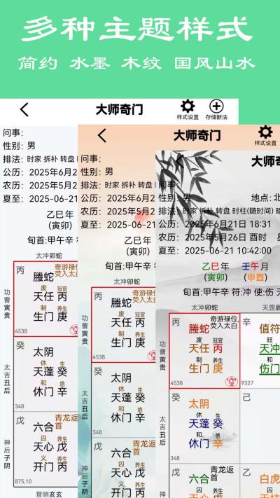 支持年、月、日、时家奇门等多层级排盘,并可选择拆补、置润等不同置闰法定局,严格遵循不同流派的操作规范。