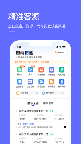 在拓客等核心板块提供清晰的数据更新统计与效果展示面板,实时反馈线索增长、商机曝光量、互动率等关键指标,帮助用户量化营销成果,为策略优化提供可靠的数据支撑。