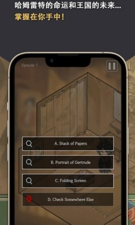 体验的核心在于扮演与抉择。进入东方宫廷的世界后,所有行动均通过点触场景中的高亮元素或对话选项来推进。首要目标是跟随剧情,理解父王逝世的谜团与叔父克劳狄斯的嫌疑。过程中,与霍拉旭、波洛涅斯等每一位角色的交谈都需审慎,因为对话的选择塑造哈姆特尔的形象,更会开启或关闭后续的信息渠道与盟友支持。