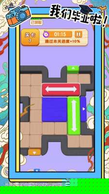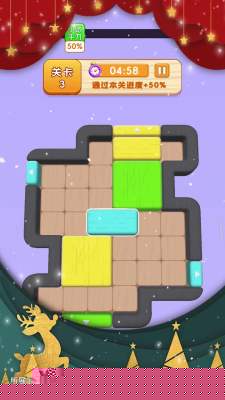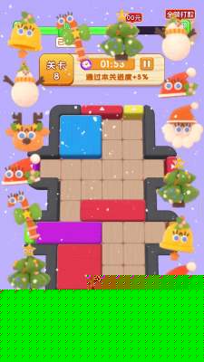 核心目标清晰:在布满方形木块的盘面上,通过滑动操作,将指定的目标木块移动到唯一的出口位置。木块只能沿水平或垂直方向在空闲格中移动,无法跨越其他障碍。许多关卡中,除了目标木块,其他木块也往往需要精密排布,才能为最终移动创造空间,这要求具备前瞻性的布局规划能力。