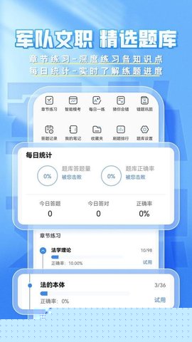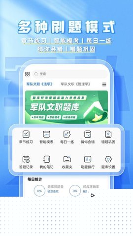 依据军队文职考试复杂的科目体系,对题库进行了多层级的精细分类,从公共科目到各类专业岗位科目,结构清晰,便于使用者快速定位并深入特定知识板块进行高效练习。