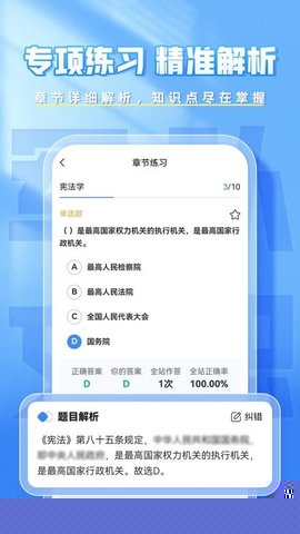 融合了章节练习、错题重做、模拟考试与数据分析,构建了学习-检测-巩固-评估的完整复习闭环,引导备考者遵循科学方法,系统性地推进复习计划。