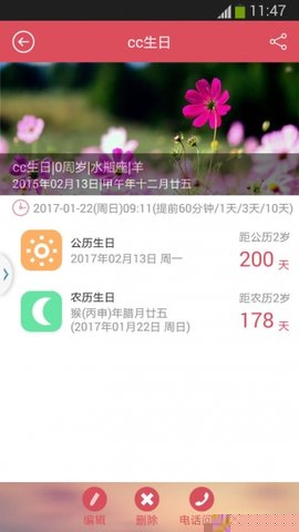 可为每位联系人独立创建生日等纪念日提醒,并关联其电话号码或社交账号信息,便于在提醒触发时快速进行联系或祝福发送。