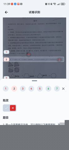 识别准确性受拍摄质量影响。请确保在光线充足、均匀的环境下拍摄,避免阴影覆盖批改笔迹。建议使用颜色对比鲜明的红色或橙色笔进行批改,以提高识别率。若仍不准确,可尝试在详情页手动调整识别区域。