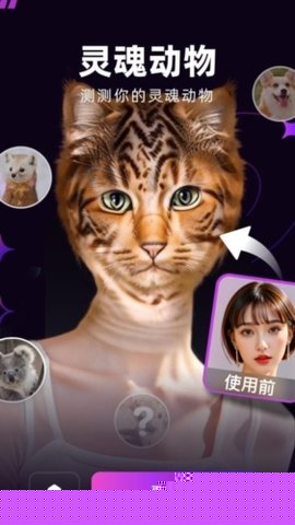 提供如灵魂动物测试、古装美人变身等主题特效,将静态修图转化为互动体验,增加使用的娱乐性与分享价值。