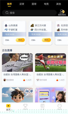 提供正在进行中的各类体育比赛直播,用户可进入对应频道观看,部分场次支持多解说音轨切换,满足不同观众的解说偏好。