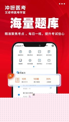 冲呀医考是一款专为医学考试备考设计的综合性学习软件,其内容严格遵循最新考试大纲,集成了海量真题题库、考点精析视频课程以及智能化学习规划功能。支持微信小软件、手机APP及网页端多平台使用,学习数据实时云端同步,确保用户在不同设备间能够无缝衔接复习进程,为医学生和医疗从业者提供高效、系统、便捷的备考软件。