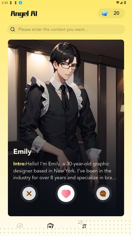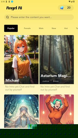 在本站下载并完成安装后,启动软件即可进入角色浏览界面。通过左右滑动查看不同角色卡片,点击任意角色头像或简介区域,便可直接跳转至一对一的专属对话窗口开始交流。
