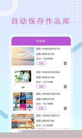 所有录制完成的视频均会默认保存至专属的作品库中,并附带基础信息,有效防止文件散落丢失,方便进行集中管理和批量操作。