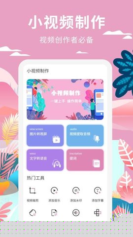 小视频制作是一款功能全面的短视频创作与编辑软件,集成了视频剪辑、音频处理、特效添加及字幕生成等多种实用模块,能够满足从基础裁剪到高级合成的各类需求。其直观的操作界面与丰富的内置资源,让用户无需专业背景即可快速上手,轻松实现创意想法,高效产出高质量的视频内容,适用于社交媒体分享、个人记录或商业宣传等多种场景。