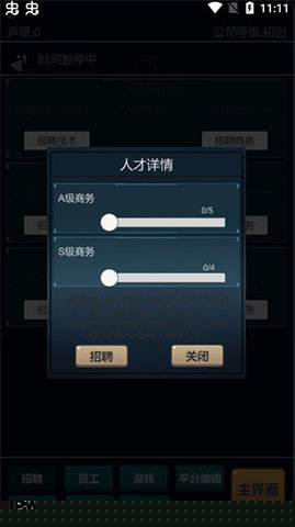 雇员系统涵盖策划、软件、美术等多类专才,每位成员拥有独立的能力属性,直接影响项目进度与产出质量。