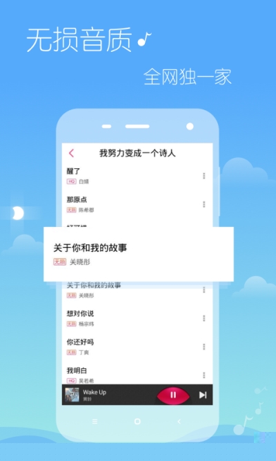 支持在软件切换至后台或手机锁屏状态下持续播放音乐,在回复消息、浏览网页的不间断地欣赏音乐,操作互不干扰。