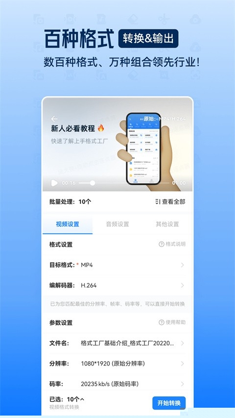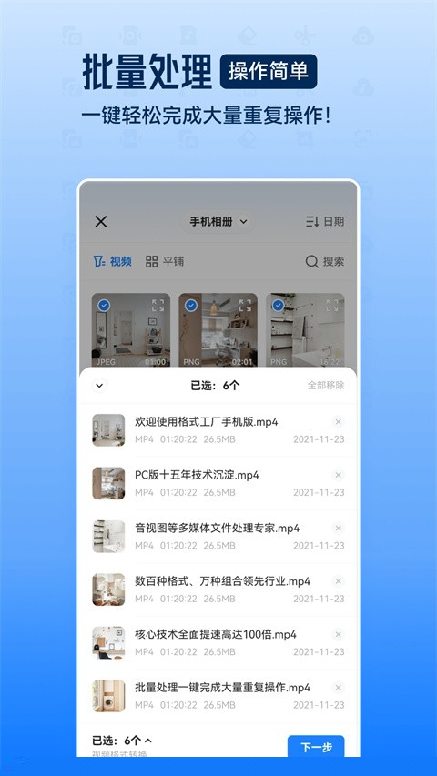 在主界面选择对应功能(如视频转换)后,进入文件添加页面,可一次性选择多个需要处理的文件,统一设置输出格式与参数,启动任务即可实现批量顺序处理。