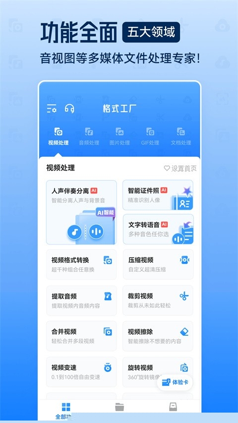 集格式转换、压缩、剪辑、提取、GIF制作等多种常用需求于一体,免去了用户在不同软件间切换的麻烦,实现了多媒体处理的一站式软件。