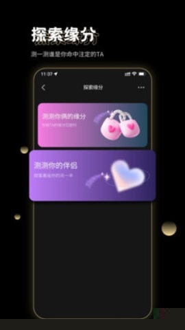在主界面导航中找到缘分测试功能入口,双方参与一系列预设的趣味选择题或问答题,提交后系统将基于答案模型自动生成并展示兼容性分析报告。