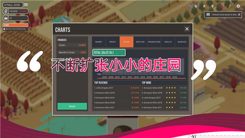 酿造物语中文版是一款以葡萄酒酿造为核心的模拟经营类作品,将扮演一位酒庄庄主,从零开始规划葡萄园、研究风土气候、精细管控发酵过程,直至打造出享誉世界的顶级佳酿。作品深度还原了从种植到装瓶的完整产业链,融合了农业管理、科学酿造与商业运营等多种元素,为提供了一段充满知识与策略挑战的田园创造之旅。
