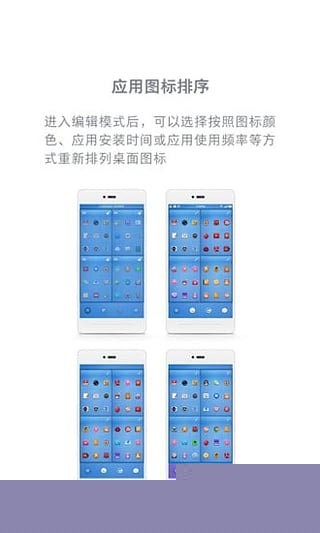 除了基础的宫格约束,还提供了按安装时间、字母顺序、颜色光谱或自定义分组等多种排序方式,解决了用户在海量软件中难以快速定位特定目标的痛点。