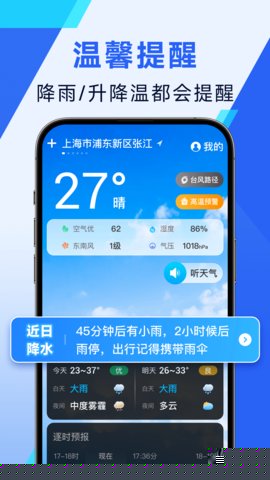 集成语音合成与识别技术,支持以自然语言交互方式查询天气,并能主动进行语音播报,解放用户双眼。