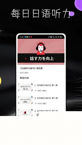 每日日语听力是一款专为日语学习者设计的综合性语言学习工具,集成了海量原声音频、系统化课程与智能训练功能,通过沉浸式环境帮助用户从入门到精通全面提升日语听力、口语、阅读及翻译能力。其资源库涵盖新闻广播、动漫影视、考试真题及日常会话等多种场景,并配备实时翻译、生词解析与个性化学习计划,适配不同水平用户的自学需求,是高效掌握日语的得力助手。