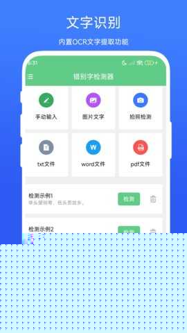 支持直接上传TXT、DOC、DOCX、PDF等格式的电子文档,具备OCR能力,可从相册选取或直接拍摄JPG、PNG格式的图片,自动提取文字内容进行校对。